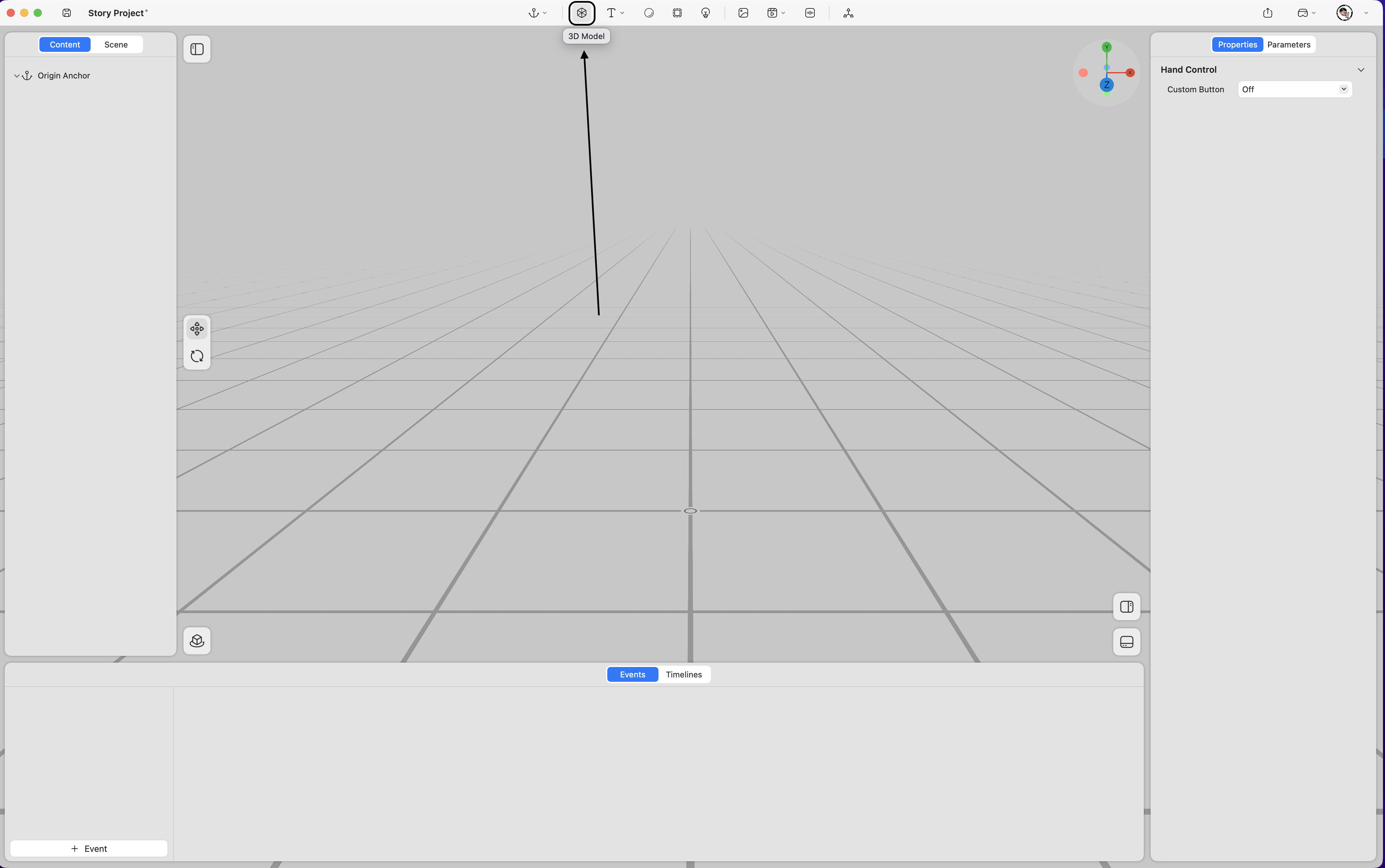 Supports static or animated models in .usdz format within the spatial environment.